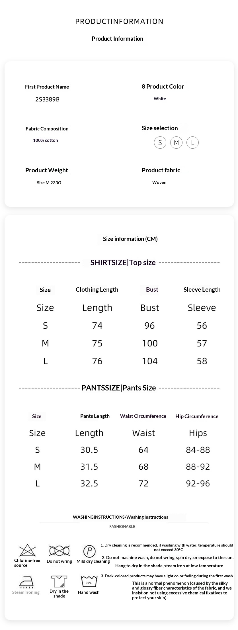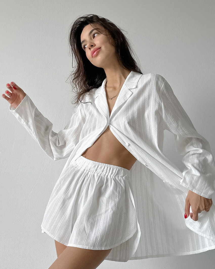 Autumn Winter New Comfortable White Pure Cotton Loose-Fit Long-Sleeve Shorts Set
